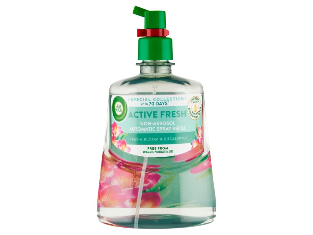 Air freshener refill scent: blooming freesia and eucalyptus water-based formula with natural essential oils with odor-neutralizing molecules without phthalates, propellants and dyes AIR WICK Active Fresh water-based refill for automatic diffuser is in the spirit of ecology, because you just add the refill to your automatic diffuser and you can continue to use it. Enjoy the enchanting scents with natural essential oils. The formula is enriched with odor-neutralizing molecules that effectively deal with unpleasant odors. The water-based formula is the result of a thoughtful selection of ingredients: without phthalates, propellants and dyes.