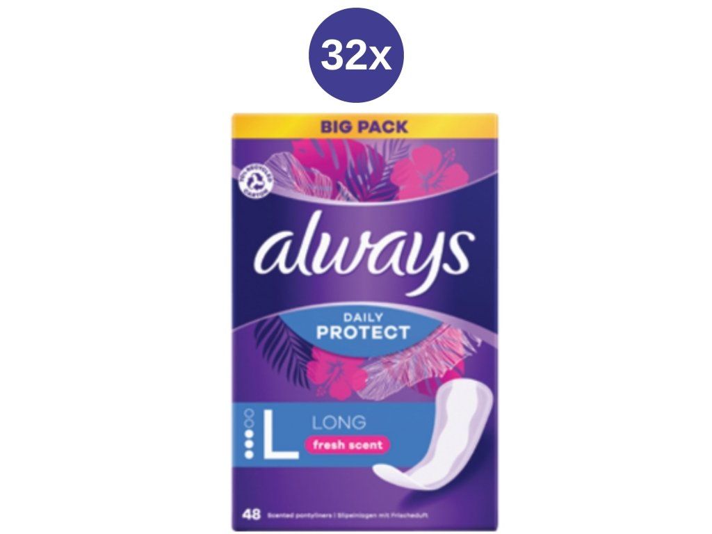 Always Pro Long Deo (Daily Protect Long Fresh) panty liners are designed for everyday protection, comfort and long-lasting freshness. Thanks to their elongated shape, they provide better coverage and higher protection than classic intimates, which you will appreciate during discharge, light menstruation or as additional protection during the day.