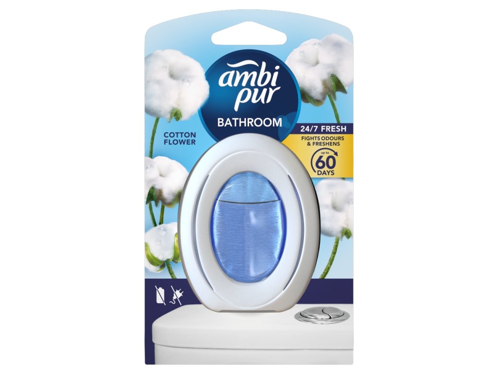 Ambi Pur Bathroom air freshener eliminates odours in the air while helping to prevent them from soaking into soft surfaces such as towels, bath mats and shower curtains for up to 50 days. It contains odour converters, which are actually different perfume molecules that easily bind to a wide range of odour-causing molecules. Once they bind to them and undergo a chemical reaction, new molecules are created that no longer smell unpleasant. Odour converters are particularly effective when used over a long period of time, so your bathroom is always ready for guests. As there is no electricity or batteries required, Ambi Pur Bathroom is convenient and easy to use. It is available in a variety of scents.