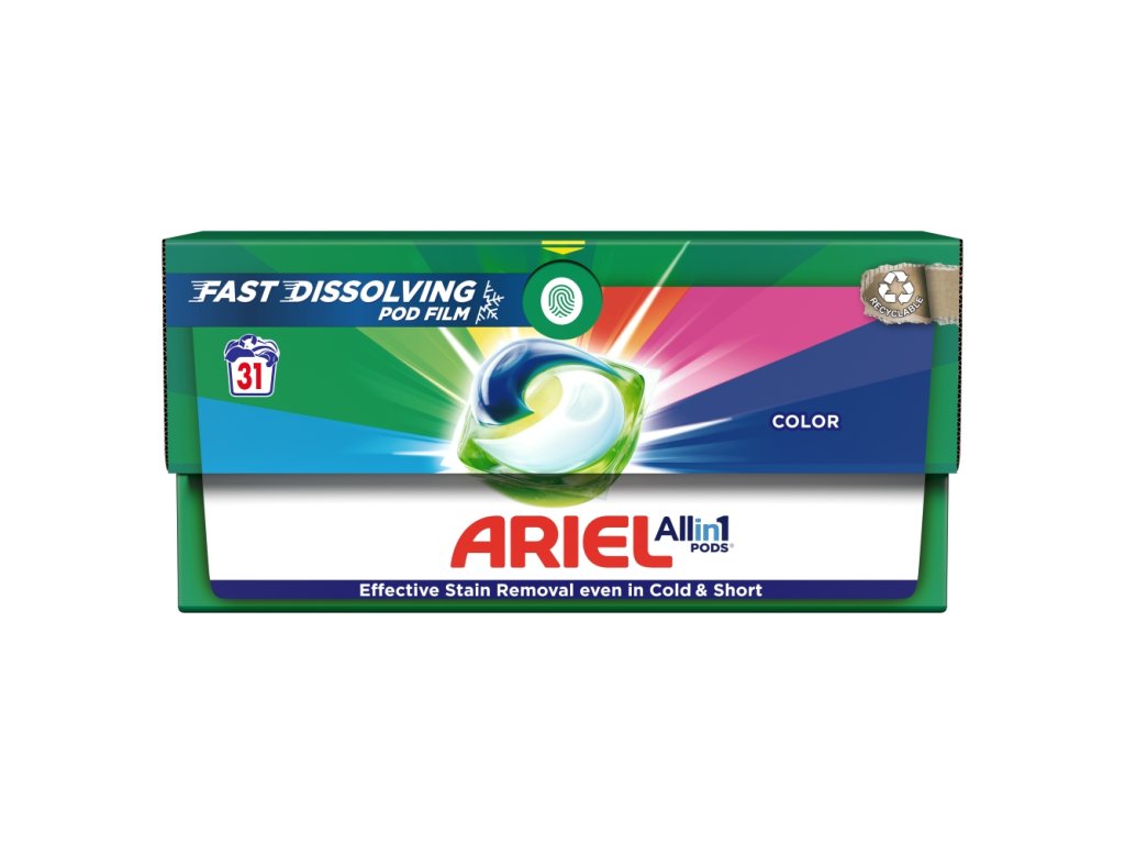 Ariel washing capsules suitable for colored laundry . The classic measuring of washing powder has already been abandoned, Ariel Color washing gel capsules are much more concentrated than loose washing powder and are very easy to dose. Ariel washing capsules guarantee perfect results when washing laundry from 20 °C .