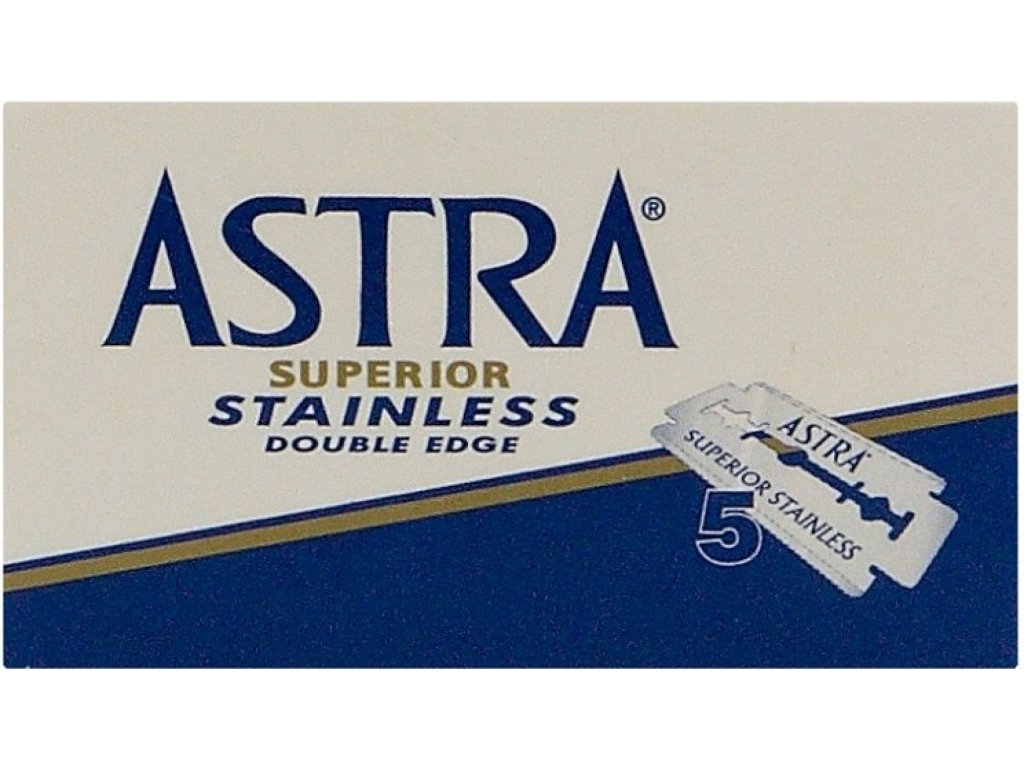 The popular Astra Superior Stainless razor blades are made of high-quality stainless steel. They are sharper than the green Astra Platinum, but last shorter. Each razor blade is individually wrapped in waxed paper. Supplied in a paper box containing 5 razor blades. Made in Russia.