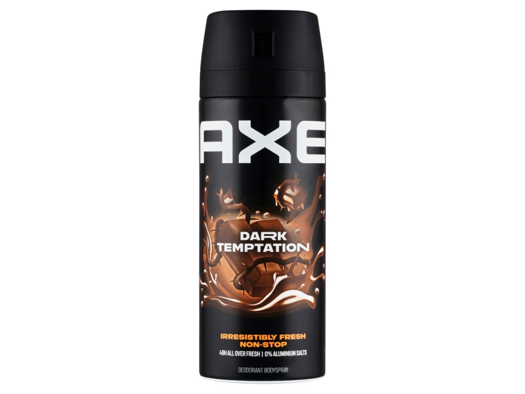 AXE Dark Temptation Men's Deodorant Spray. Reliable and long-lasting protection against odor for up to 48 hours . Subtle, refined fragrance with notes of chocolate. As if you yourself were made of chocolate. Protects your style. Every day. Reliable. AXE Dark Temptation deodorant provides long-lasting freshness that every man can rely on. Dark Temptation Men's Deodorant has an enticing chocolate scent that will emphasize your charisma and, in addition, pleasantly refresh you throughout the day. Your style is your signature! We recommend combining it with AXE Dark Temptation Aftershave 100 ml and AXE Dark Temptation Shower Gel 400 ml.