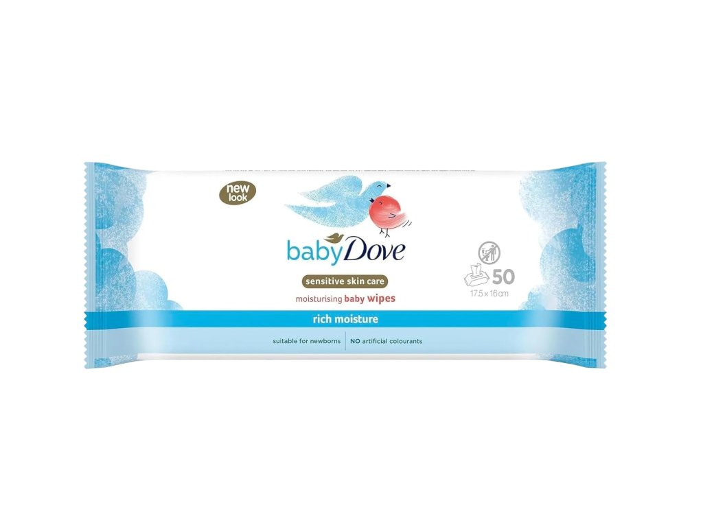 Baby Dove Rich Moisture Wipes are baby wipes that gently cleanse and care for the sensitive skin of newborns and infants without irritating it. The wipes are designed to **remove impurities while instantly hydrating the skin , leaving it soft and smooth . Their formula is hypoallergenic and alcohol-free , so they are gentle on baby skin and suitable for use on the face, hands and bottom . The wipes have a resealable packaging that helps retain moisture and is practical for travel or on the go. Baby Dove products are dermatologically and pediatrically tested and are designed for everyday use.