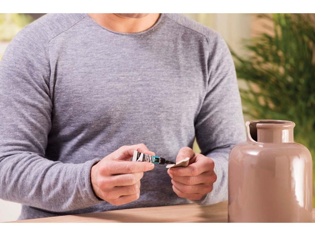 Features: Ultra-fast and extremely strong: Provides a strong bond in seconds. Precise application: Thanks to Direct-Stop-Technology, the adhesive can be applied precisely without unwanted dripping. Waterproof and dishwasher safe: The joints are water-resistant and dishwasher safe. Application: Ideal for bonding small areas. Bonds almost all hard and flexible materials such as: Plastics (e.g. hard PVC, ABS, PS, Plexiglas®, polycarbonate) Porcelain and ceramics Leather Metal Wood Cork Felt and textiles (it is recommended to check suitability beforehand) Rubber Not suitable for: Polyethylene (PE) Polypropylene (PP) Silicone resins PTFE (Teflon) Styrofoam Fabrics and leather clothing Instructions for use: Surface preparation: Make sure that the surfaces to be bonded are clean, dry and free of dust or grease. For better adhesion, the surfaces can be lightly sanded. Glue application: To pierce the membrane, turn the entire cap clockwise firmly onto the tube. Do not press on the tube while piercing. Unscrew the top cap to reveal the applicator. Apply a thin layer of glue to one side TIP! too much glue can significantly slow down the curing process and you may not achieve such a high-quality result. Press the parts together immediately. After use: Clean the nozzle with a dry cloth and replace the cap. Technical specifications: Chemical base: Ethyl cyanoacrylate Color: Clear Consistency: Liquid Density: Approximately 1.10 g/cm³ Initial strength: 5-60 seconds (depending on conditions) Temperature resistance: -40 °C to +80 °C Moisture resistance: Good Solvent-free: Yes For best results, store the glue in a dry, cool and frost-proof place. Storage below 5 °C (in the refrigerator) ensures maximum durability.Additional parameters