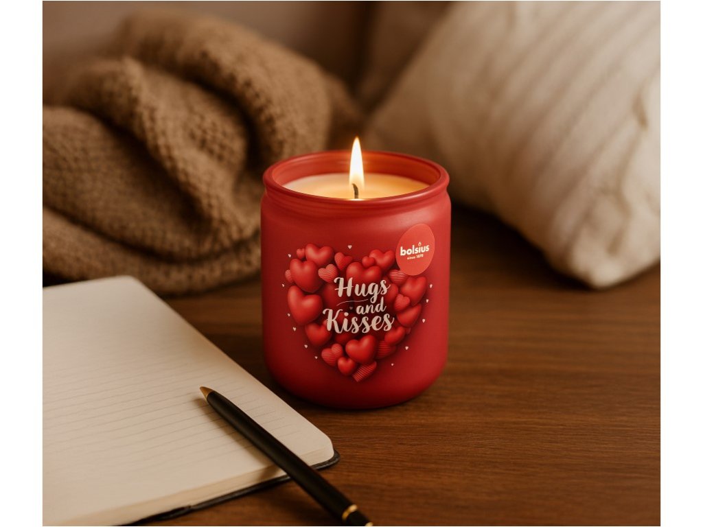 Bolsius Glass Red Heart with inscription, Mango, scented candle 68x80mm