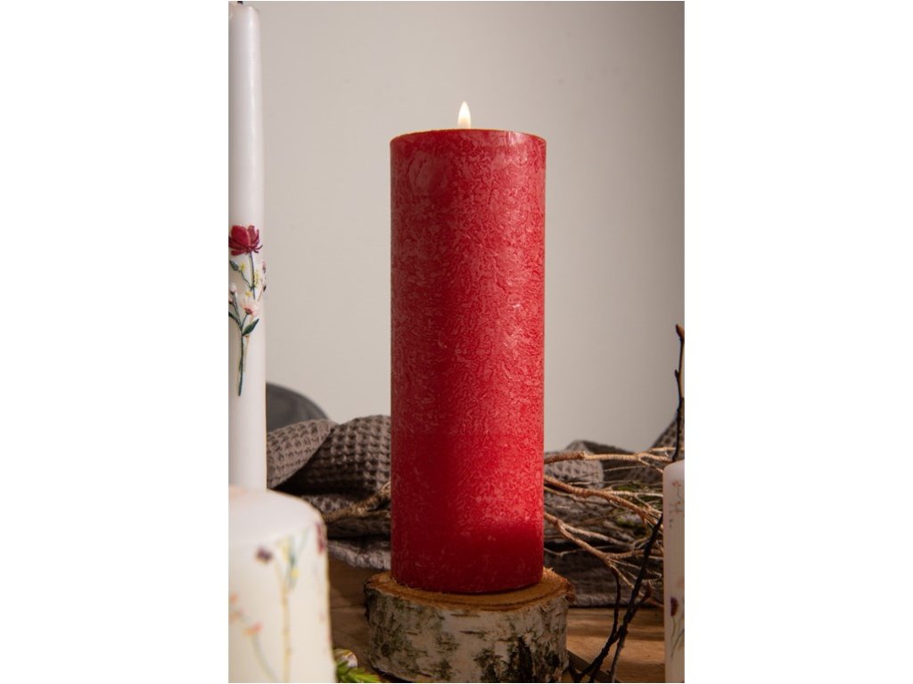 Rustic cylinder candle Bolsius in red, ideal for natural decorations. Its dimensions are 68x190 mm.Additional parameters