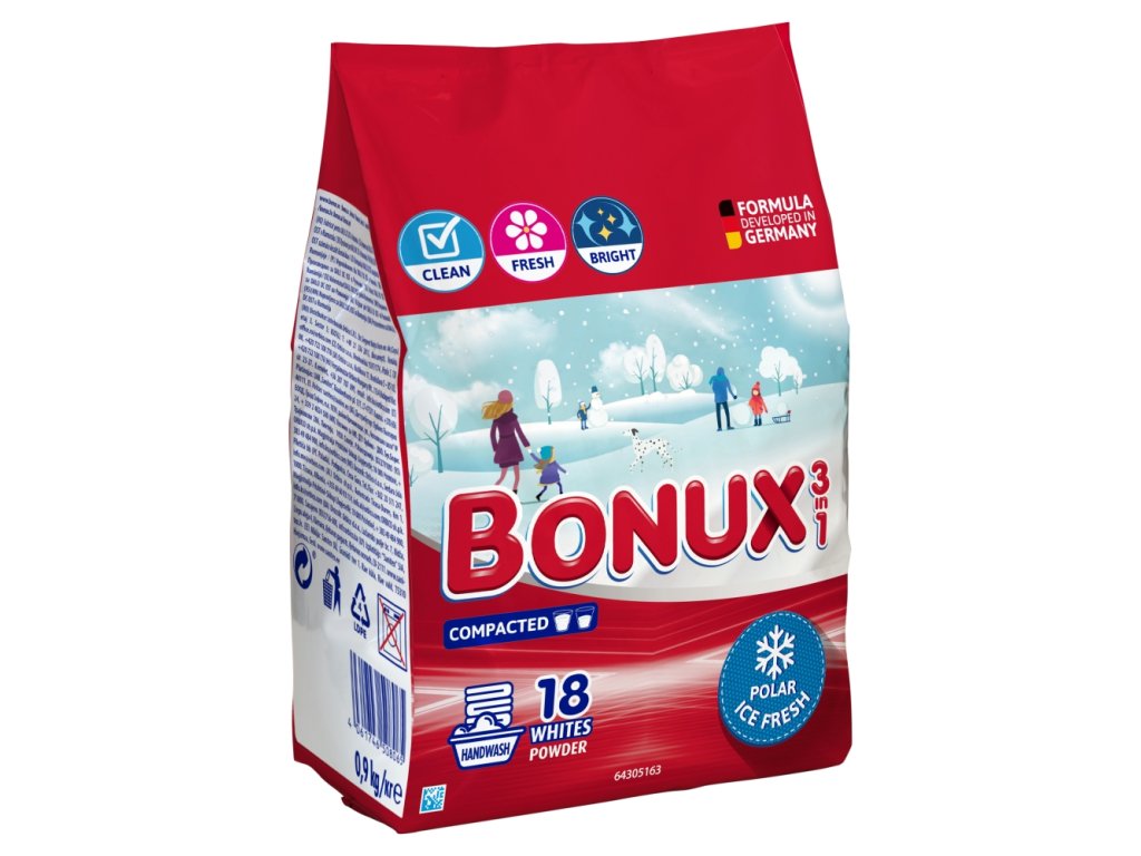 Bonux White Polar Ice Fresh 3in1 with a unique fresh scent, it is designed for white laundry. You will get good washing power and a fresh scent that you would expect only from the best and most expensive detergents. It contains active particles for perfect washing and a component that prevents limescale deposits, you can wash at temperatures from 30 °C. Do not use on wool and silk . Prevents limescale build-up on white laundry for up to 14 days of freshness, effective washing, fragrant and clean laundry.