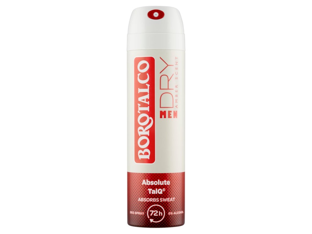 Borotalco Men deodorant for men looking for absolute protection against sweat. The deodorant spray contains an exclusive blend of absorbent natural and mineral powders, absorbs sweat and guarantees a dry and clean feeling on the skin in absolutely any situation for up to 72 hours.