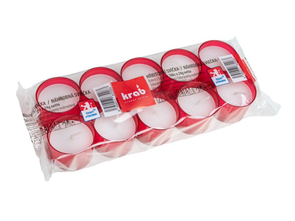 Cemetery candle 24g 8h. 10pcs red pressed