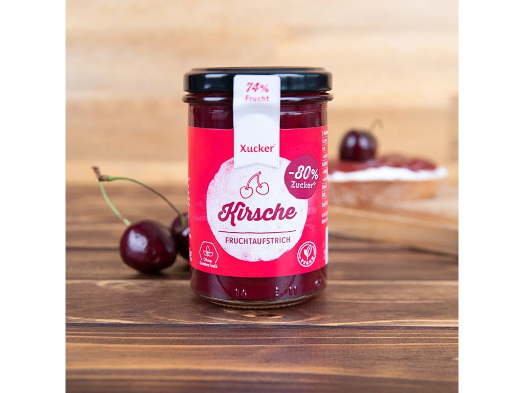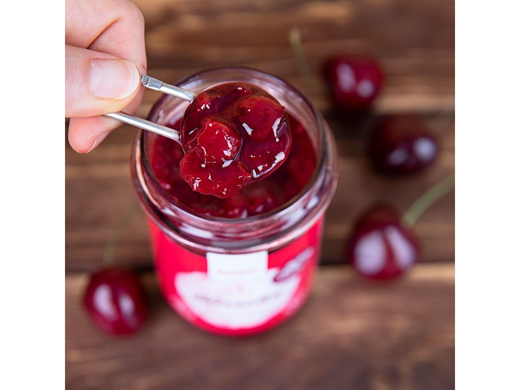 Cherry jam stands out with its 74.8% sour cherry content , thanks to which you can enjoy the genuine fruit taste without unnecessary preservatives and dyes . In addition, you will appreciate that this jam has less sugar compared to similar products. However, you will not be deprived of the sweet taste, as xylitol, which has a lower calorie value , will take care of it, so people who care about a healthy lifestyle can also enjoy the jam.
