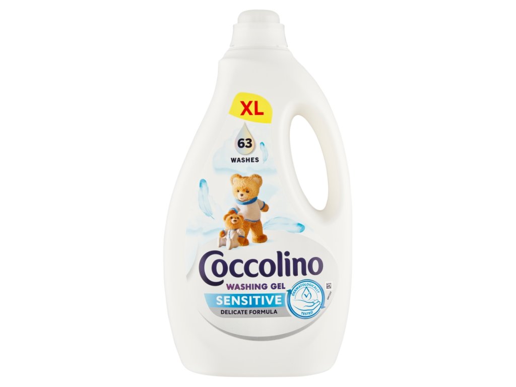 - Are you looking for a washing gel that will make your laundry clean, fresh and gentle on your skin? COCCOLINO Sensitive will serve as a universal washing agent, suitable for people with sensitive skin. You can wash any clothes with this gel, as it contains ingredients for various laundry materials. If you have stains on your clothes, the washing gel will reliably remove them. Coccolino Sensitive washing gel was developed for everyday laundry care and is dermatologically tested. This washing gel was developed for colored laundry and white laundry. The product ensures that the laundry does not lose its shape during washing or drying. For a perfect washing experience, combine it with Coccolino Pure and Coccolino Sensitive fabric softeners.