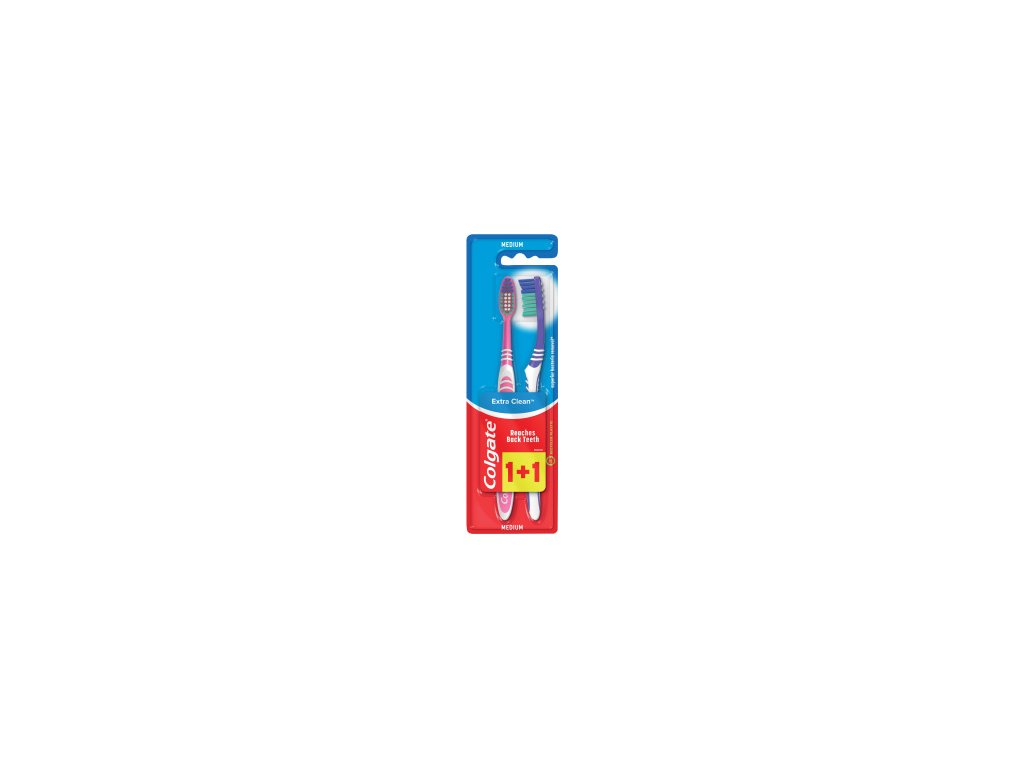Colgate Extra Clean toothbrushes, medium hardness, pack of 1+1