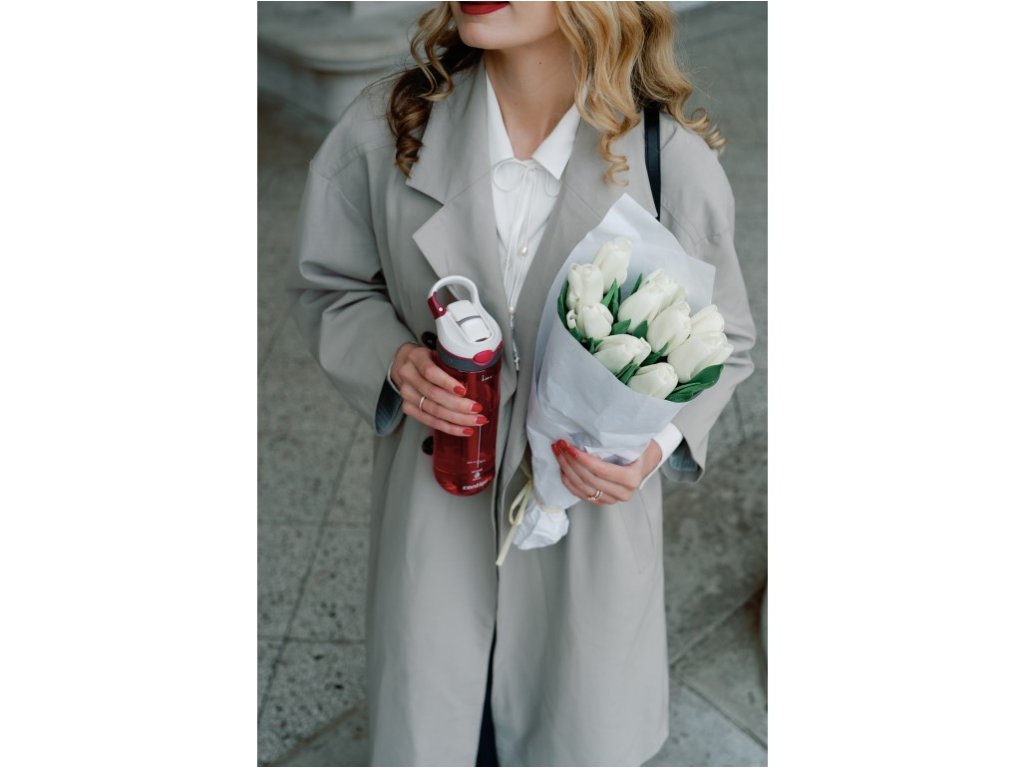 The bottle is made of innovative Tritan material, which contains an average of 50% recycled material. This high-quality plastic is absolutely ideal for repeated use. You don't have to worry about unpleasant odors that could settle in the bottle, or unsightly stains from drinks. Your water will always taste fresh and the bottle will still look great. One-handed operation brings maximum comfort not only during sports, but also on the go. With a simple press of a button, you can turn the drinking spout upwards. The spout with the lid can be easily removed for thorough cleaning. Both the lid and the body of the bottle are suitable for washing in the dishwasher on the top rack. The drink button lock prevents accidental opening while traveling. Suitable for most car and bicycle cup holders. The product is not spill-proof in the open position, so we recommend carrying it in an upright position.Additional parameters