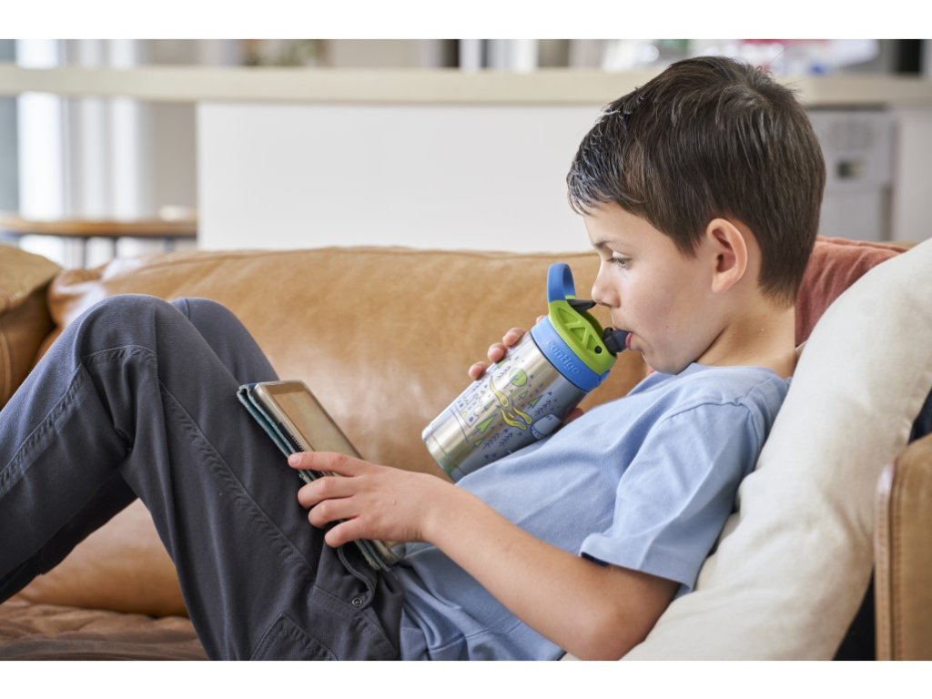 Bottle with AUTOSPOUT technology and a valve designed to minimize the risk of spills and leaks. The THERMALOCK double-wall vacuum insulation keeps drinks cold for up to 14 hours. Made of double-walled vacuum-insulated 18/8 stainless steel. The thermos bottle can be easily disassembled for thorough cleaning. The lid and body of the thermos bottle are suitable for washing in the top rack of the dishwasher. Fits in most drink holders. Soft handle for easy carrying at school and on the playground. The angled straw allows access to even the last drop. The thermos bottle is not suitable for hot drinks for drinking safety reasons. In the open position, the product is not spill-proof, so we recommend carrying it in an upright position.Additional parameters