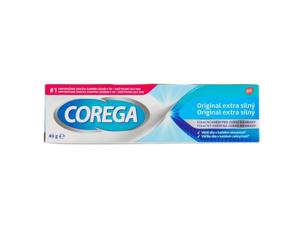 COREGA® Extra Strong Fixing Cream ensures reliable fixation of your dentures throughout the day. Even if your dentures fit well, Corega cream seals them, preventing unpleasant food residues from getting under them. It does not contain any artificial dyes or flavors that could affect the taste of food. The practical shape of the tube neck allows for more precise dosing and application of the cream.