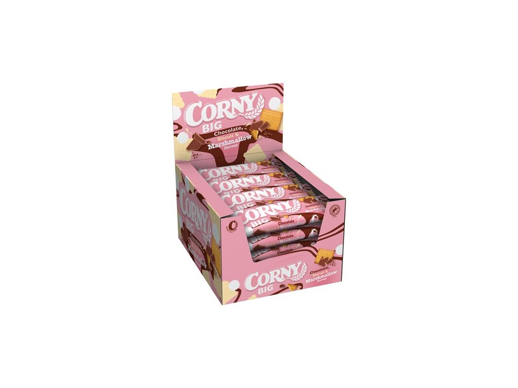 Cereal bar in milk chocolate with biscuits, with Marshmallow flavor