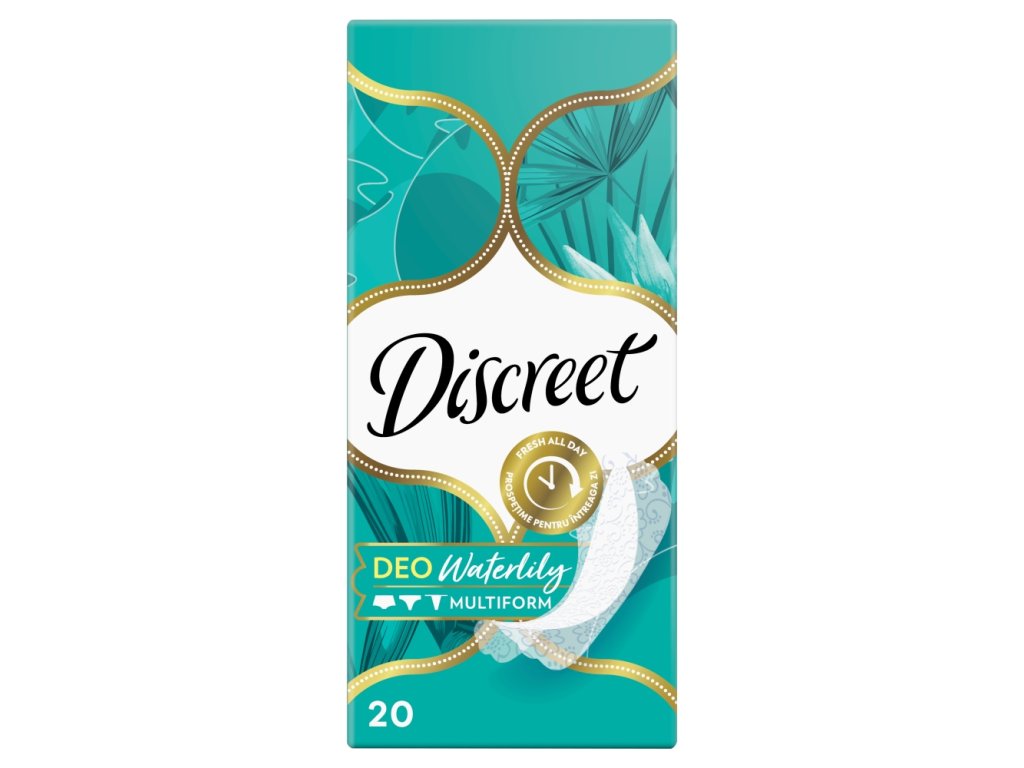 The wonderful scent of Discreet Multiform Waterlily intimates will give you a pleasant feeling of freshness and help you feel beautiful. These intimates allow the skin in the intimate areas to breathe naturally , ensuring up to 12 hours of freshness and comfort. They are so thin that you won't even feel them. In addition, thanks to their flexible design, they adapt to any cut of underwear. Whatever your day brings, they will adapt to your movement.