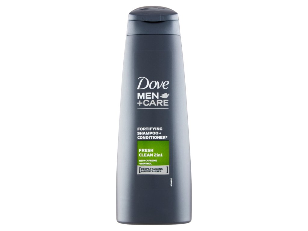 Dove Men+Care Fresh Clean 2-in-1 Shampoo for Men provides a thorough and refreshing wash. This 2-in-1 shampoo for men is enriched with caffeine and menthol . It washes away dirt and oil, leaving hair invigorated and fresh.