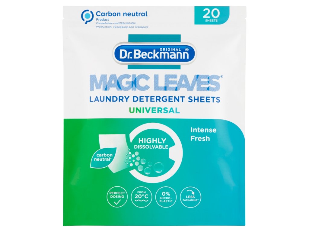 Dr. Beckmann Magic Leaves Fresh Blossom Universal Laundry Wipes are a feather-light detergent that will make your laundry even more convenient. One water-soluble wipe ensures deep cleaning and vibrant colors, even at low temperatures.