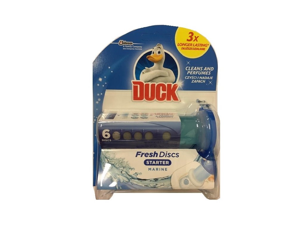 WC gel Duck Fresh Discs Sea scent perfectly cleans your toilet and very reliably protects it from limescale . Simply apply to the inner wall of the bowl and the Duck gel disc will do the work for you. WC gel Duck Fresh will scent the whole room with the scent of the sea . The Duck Fresh refill lasts for about 6 weeks or up to 600 flushes.
