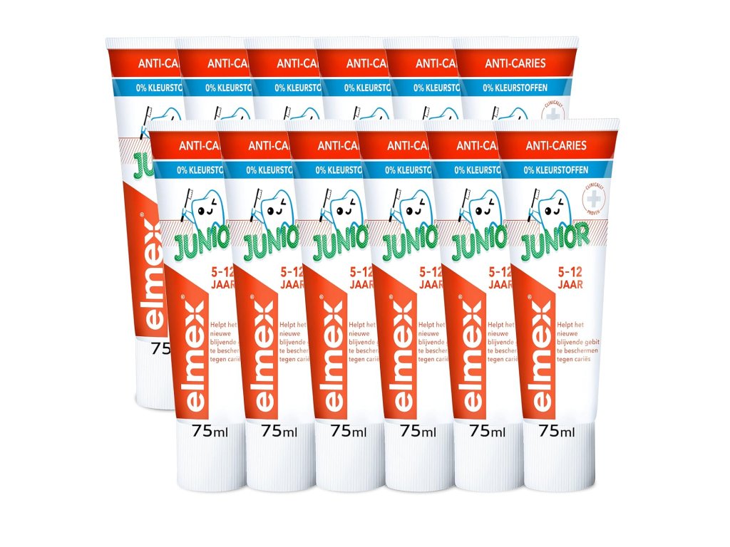 Elmex Junior fluoride toothpaste is adapted to the needs of newly erupting permanent teeth and, thanks to its age-appropriate fluoride content, provides effective protection against tooth decay . Elmex Junior fluoride toothpaste has a pleasant taste that motivates children to brush regularly.