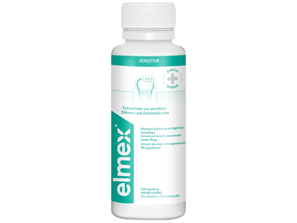 Elmex® SENSITIVE PLUS mouthwash is the ideal supplement to daily dental care. It contains a combination of the highly active active ingredient amine fluoride with a protective polymer, which supports the action of elmex® SENSITIVE PLUS toothpaste. Clinical tests have shown that the special protective system elmex® SENSITIVE PLUS, consisting of toothpaste and mouthwash, significantly reduces tooth sensitivity when used regularly and is proven to prevent tooth decay.