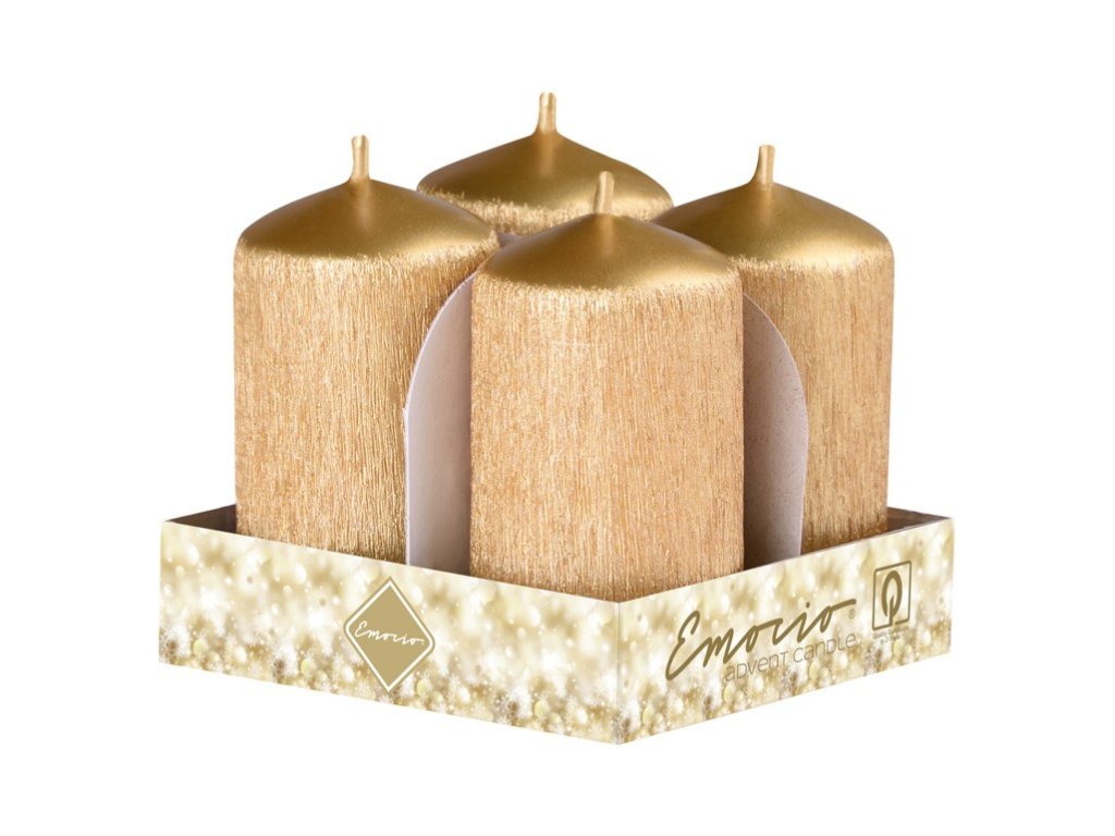 Emocio Advent cylinder 4pcs 40x75 Scratched gold candle
