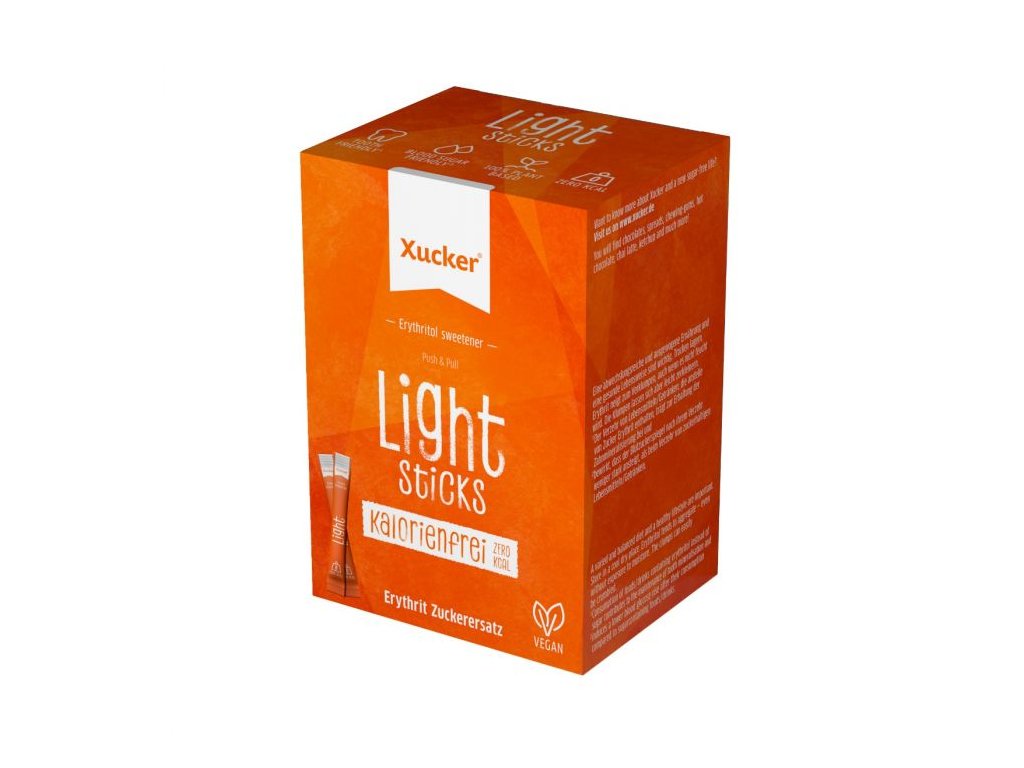 Erythritol Light sweetener in portioned packaging is a sugar substitute that is produced by fermenting glucose from corn starch. It is an excellent alternative to regular sugar, even resembling it, but contains no calories. Its sweetness corresponds to approximately 70% of the sweetness of regular and cane sugar. The product is vegan and packaged in a practical and resealable container.