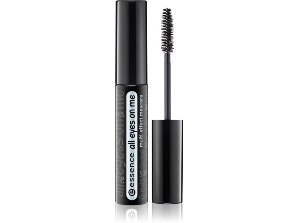 Essence All Eyes On Me. The multifunctional Essence All Eyes On Me mascara, in a soft black shade, will give you extra volume, length and curl of your eyelashes and will fit in every beauty bag. What benefits does Essence mascara offer?