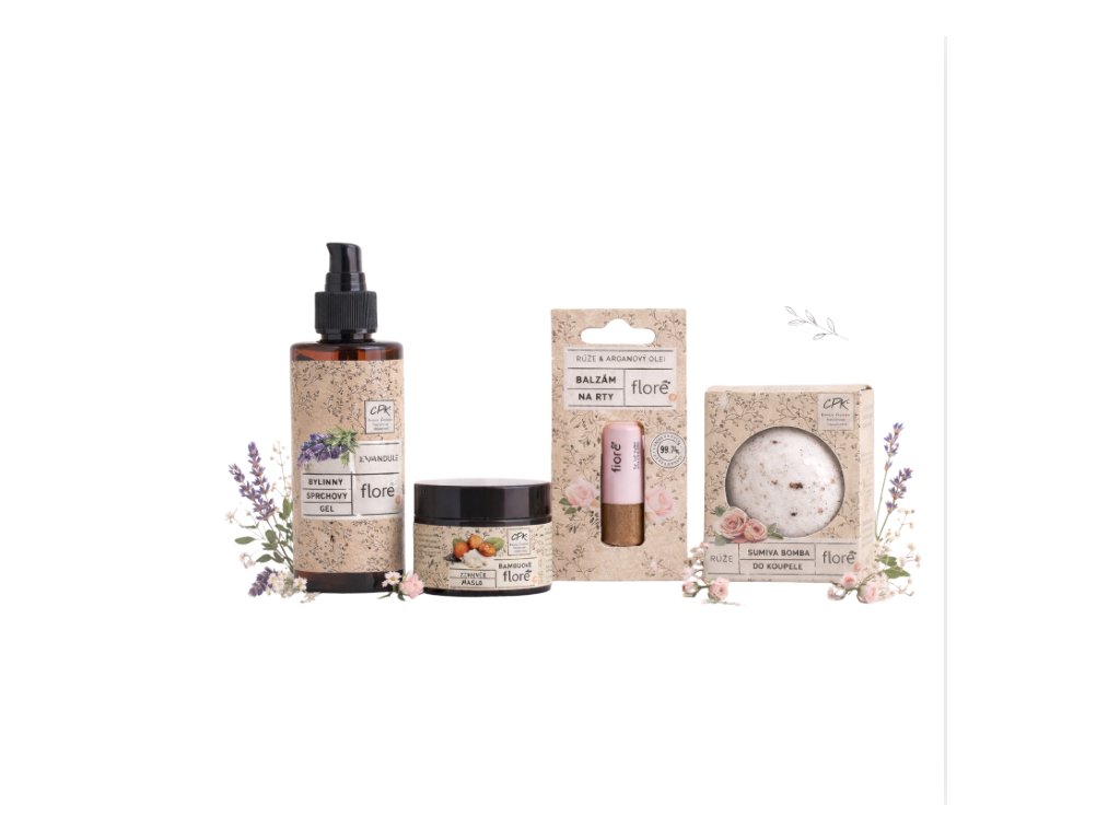 Treat yourself to a moment of peace and gentle care with the natural Flore package, which combines the soothing scent of lavender and the delicate tones of rose. Ideal as a gift or as a small home wellness ritual after a busy day.