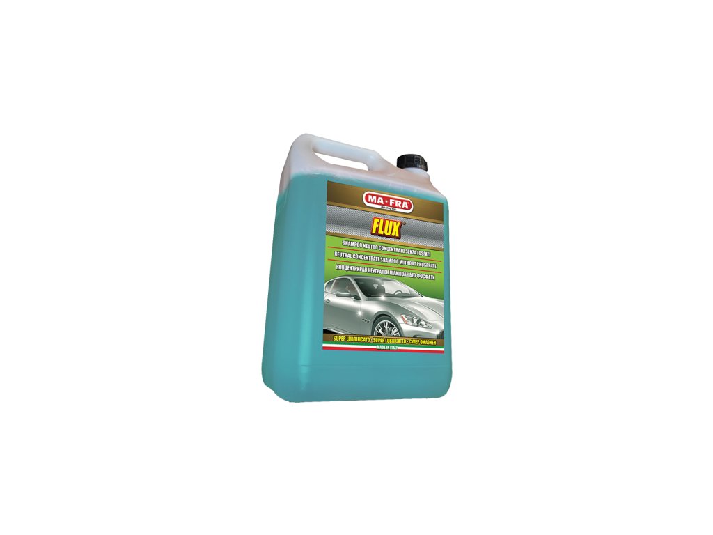 MA-FRA - FLUX 4.5 l body shampoo - Shampoo with neutral pH and phosphate-free for manual car washing. Creates a thick foam and does not leave streaks.Additional parameters