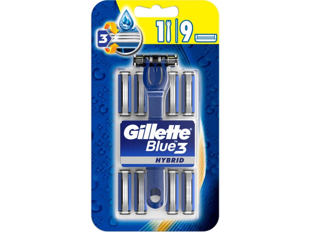 Gillette Blue 3 Hybrid Razor with 8 replacement heads for men. Men's skin deserves the same care as women's, soft and perfect.