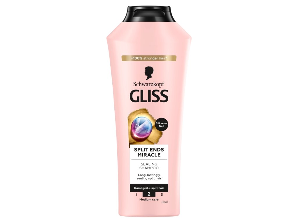 Gliss Kur Shampoo 400 ml Split Ends Miracle is a shampoo designed to restore damaged hair and prevent split ends. It contains an ionic complex and grape seed oil, which strengthen hair and protect it from further damage.