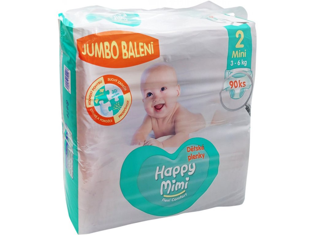 Happy Mimi Flexi Comfort 2 Mini 90 pcs, 3 - 6 kg.