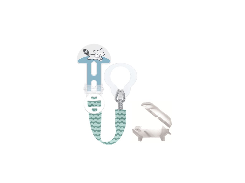 MAM Pacifier Strap with Clip & Cover includes a pacifier strap and a teat cover. Can be quickly and easily attached to any clothing. Thanks to it, the pacifier will always be clean and at hand. Strap for all types of pacifiers, teethers, etc. Thanks to the pacifier strap and teat cover, the pacifier of active children is always clean and at hand. The MAM Clip & Cover pacifier strap and cover can be quickly and easily attached to summer and winter clothing thanks to the flexible Velcro. Please write the color option for a girl or a boy in the notes. Material: latexAdditional parameters