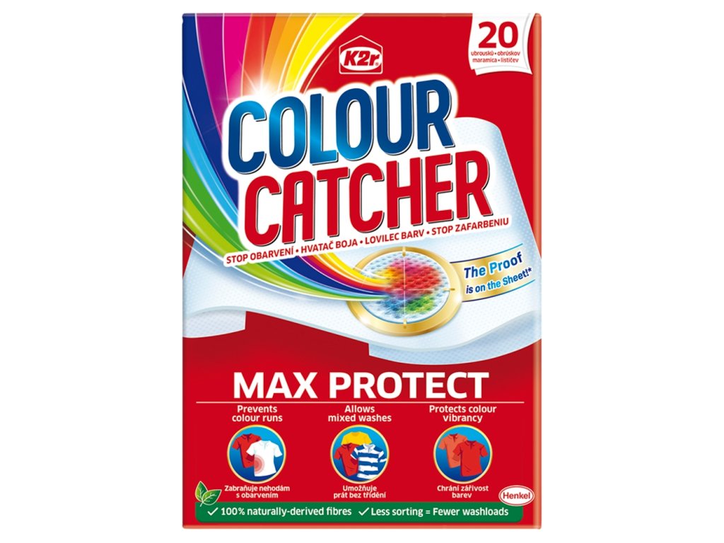 Description K2r Colour Catcher laundry wipes act like a magnet and protect your clothes from unwanted colour and dirt transfer from other clothes during the wash. This allows you to wash different coloured laundry together, saving time spent sorting, water and energy.