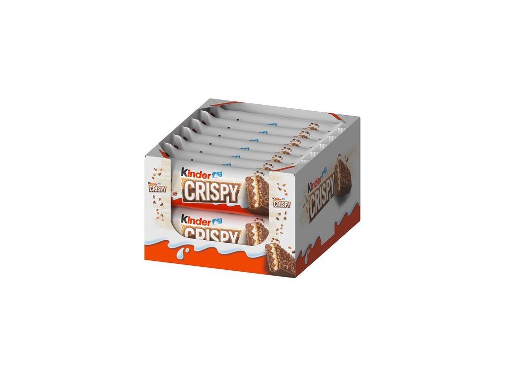 Crispy wafer (11.5%) with cocoa and hazelnut filling (22%), milk filling (21.5%) and cocoa and milk filling (12%), coated with milk chocolate and crushed biscuits (3%).