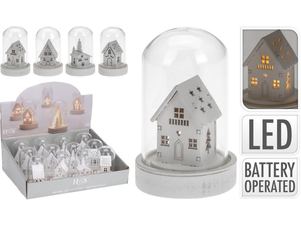 LED decoration wooden house 55x90mm, mix, white