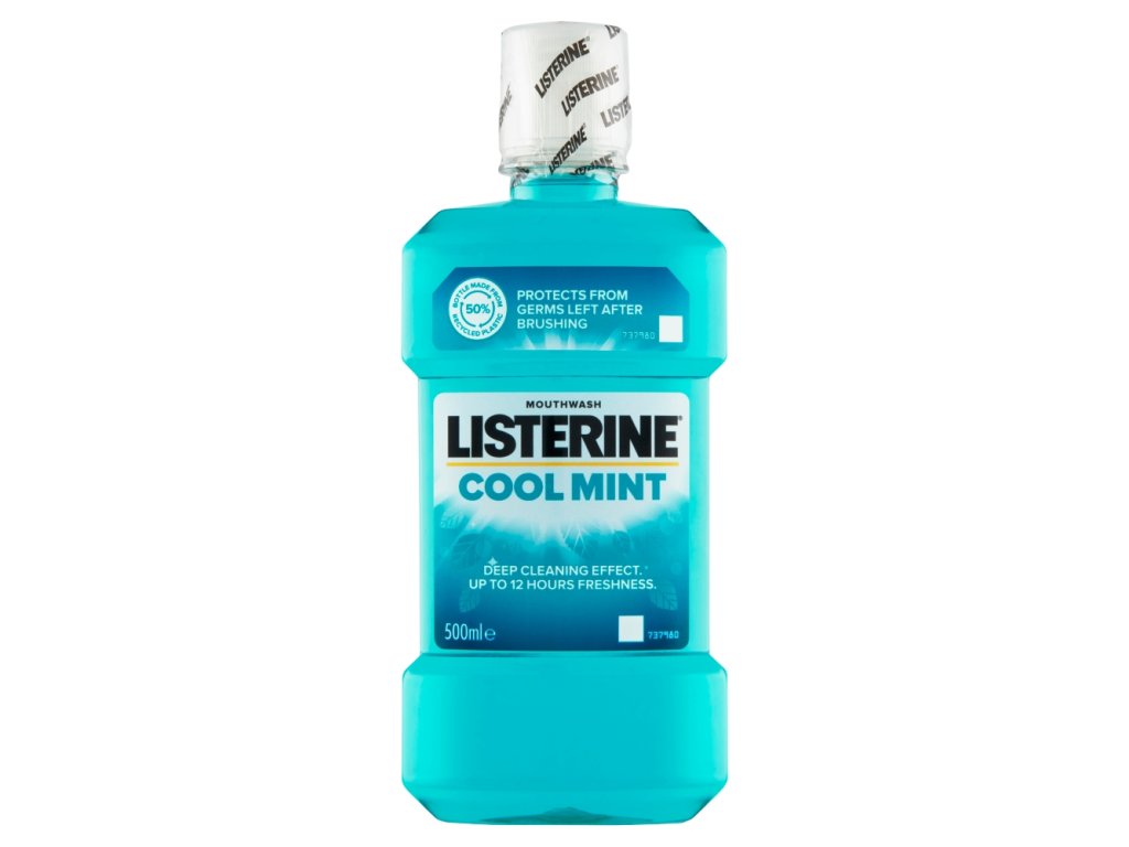LISTERINE® COOL MINT mouthwash provides lasting protection against plaque and keeps breath fresh when used twice daily.