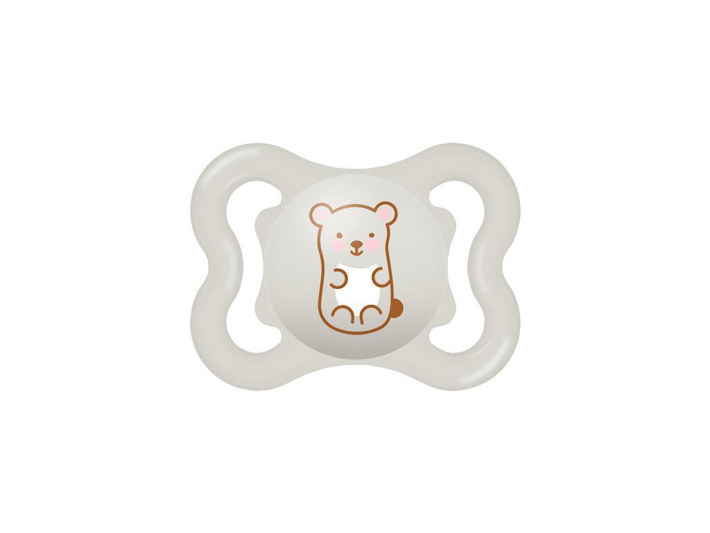 Extra large ventilation holes for better airflow around baby's mouth The MAM Air 0+ is very gentle on baby's skin thanks to extra large ventilation holes in the pacifier collar, which allow better airflow around the mouth and thus help reduce skin irritation. MAM orthodontic pacifiers are developed in close cooperation with leading medical experts for the healthy development of teeth and gums. The flat symmetrical teat made of high-quality silicone imitates the mother's breast during breastfeeding and supports the natural sucking reflex. In addition, it always fits correctly in baby's mouth. 94% of babies accept the MAM SkinSoft™ silicone teat, which is as soft as baby's skin (market research 2010-2019, tested on 1,463 babies in 6 countries). The button makes the pacifier easy and quick to grip and also easy to attach to the strap. All MAM products are made from BPA and BPS-free materials.Additional parameters