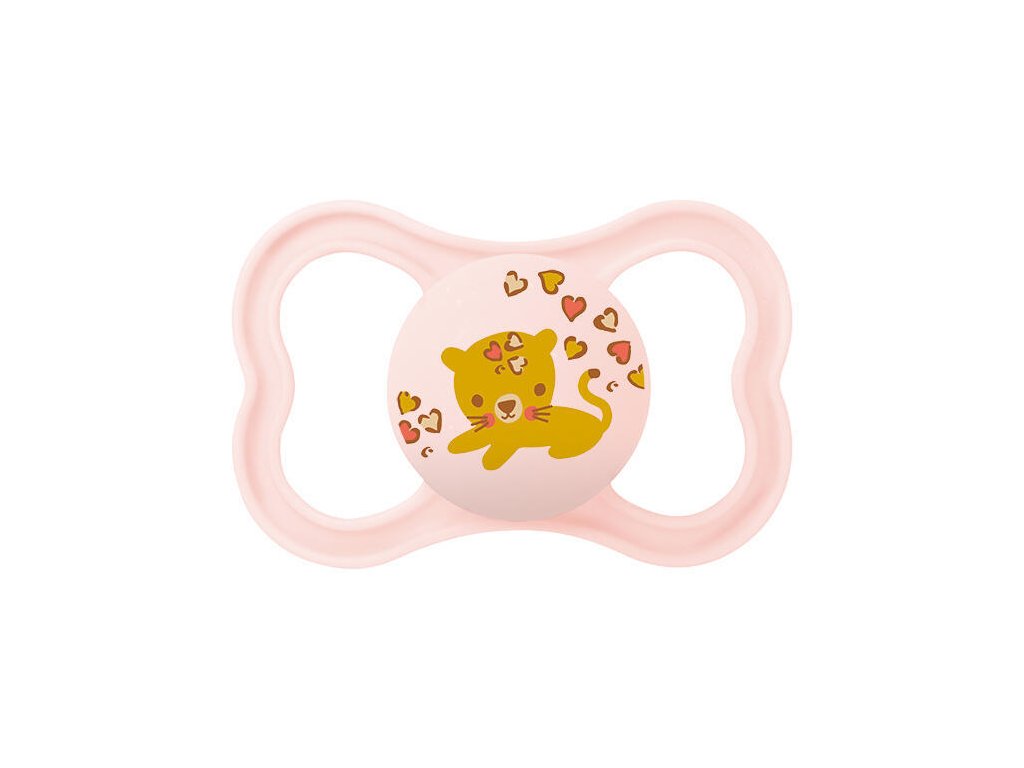 For children from 6 months, with extra large ventilation holes for better airflow around the mouth The MAM Air 6+ is very gentle on baby's skin thanks to extra large ventilation holes in the pacifier collar, which allow better airflow around the mouth and thus help reduce skin irritation. MAM orthodontic pacifiers are developed in close cooperation with leading medical experts for the healthy development of teeth and gums. The flat symmetrical teat made of high-quality silicone imitates the mother's breast during breastfeeding and thus supports the natural sucking reflex. In addition, it always fits correctly in the baby's mouth. 94% of babies accept the MAM SkinSoft™ silicone teat, which is as soft as baby's skin (market research 2010-2019, tested on 1,463 children in 6 countries). The button makes the pacifier easy and quick to grip and also easy to attach to the strap. All MAM products are made from BPA and BPS-free materials.Additional parameters