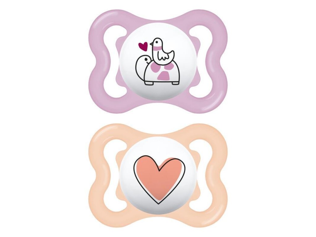 For healthy teething, gentle on the skin around your baby's mouth, the MAM Supreme is a combination of the popular MAM Air pacifiers with extra-large air holes and the MAM Perfect with an extra-thin teat, reducing the risk of crooked teeth and malocclusion. Thanks to the unique Dento-Flex velvet teat, the teat neck is 60% thinner and four times softer (on average 32-83% thinner and 1.1-19 times softer than conventional silicone pacifiers). This gives your teeth more room to grow and reduces the risk of crooked teeth. With a diameter of just 2.8 mm, the MAM Perfect teat neck is the thinnest on the market (tested by a research institute in Austria on 27 pacifiers from around the world). 94% of babies accept the MAM SkinSoft™ silicone teat, which is as soft as baby skin (market research 2010-2019, tested on 1,463 babies in 6 countries). The MAM Supreme is very gentle on baby's skin thanks to the extra large ventilation holes in the pacifier collar, which allow better air flow around the mouth and thus help reduce skin irritation. It comes in a practical box that also serves as a sterilization box.Additional parameters