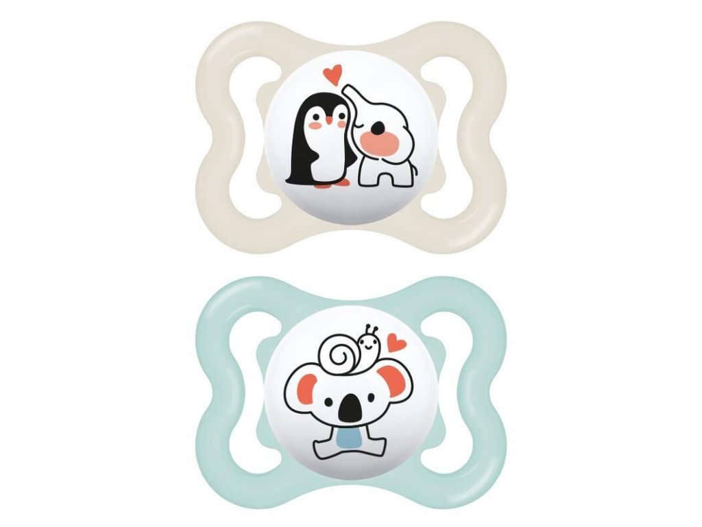 For healthy teething, gentle on the skin around your baby's mouth, the MAM Supreme is a combination of the popular MAM Air pacifiers with extra-large air holes and the MAM Perfect with an extra-thin teat that reduces the risk of crooked teeth and malocclusion. Thanks to the unique Dento-Flex velvet teat, the teat neck is 60% thinner and four times softer (on average 32-83% thinner and 1.1-19 times softer than conventional silicone pacifiers). This gives your baby more room to grow and reduces the risk of crooked teeth. With a diameter of just 2.8 mm, the MAM Perfect teat neck is the thinnest on the market (tested by a research institute in Austria on 27 pacifiers from around the world). 94% of babies accept the MAM SkinSoft™ silicone teat, which is as soft as baby skin (market research 2010-2019, tested on 1,463 babies in 6 countries). The MAM Supreme is very gentle on baby's skin thanks to the extra large ventilation holes in the pacifier collar, which allow better air flow around the mouth and thus help reduce skin irritation. It comes in a practical box that also serves as a sterilization box.Additional parameters
