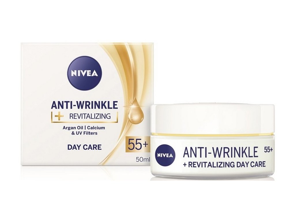 Effective ingredients mean visible results. Rely on the combination of argan oil and calcium , which fights wrinkles from the inside. In addition, UV filters in the cream composition work against UV radiation, which is one of the main causes of new wrinkles and lines. Forget about tired skin that lacks vitality. Choose - NIVEA Renewing Anti-Wrinkle Day Cream 55+ .