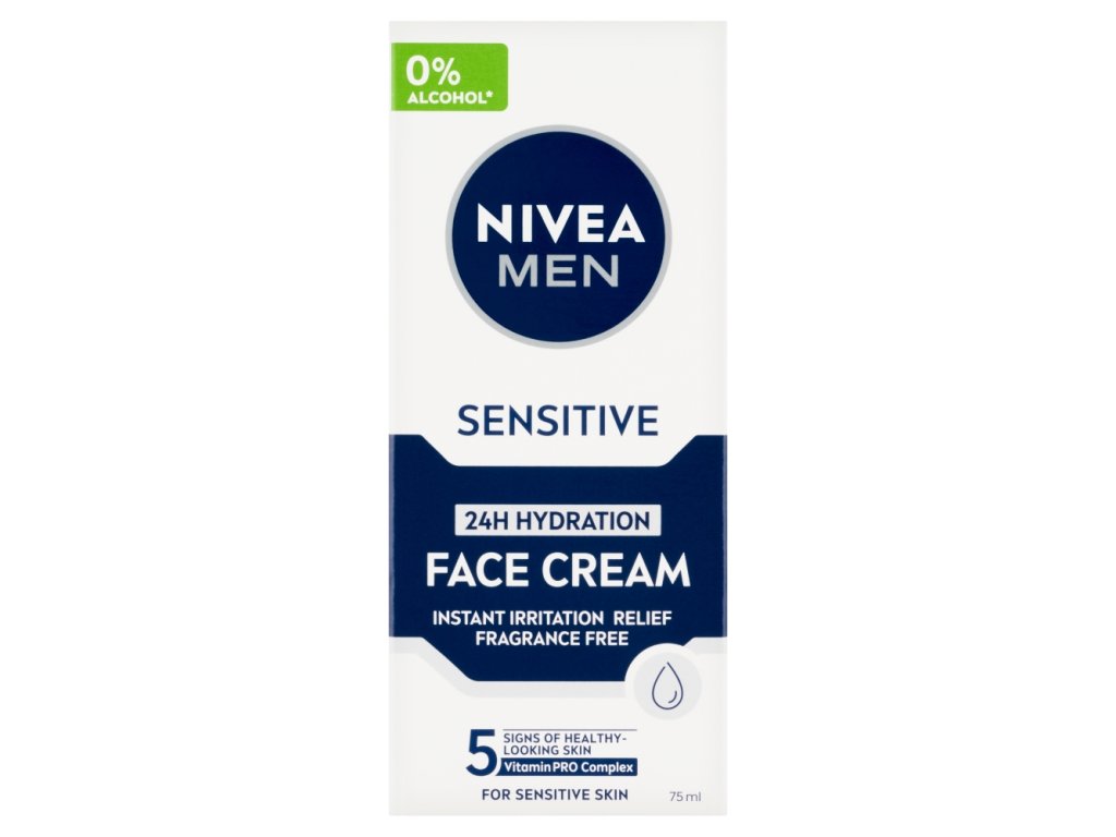 Nivea Men Sensitive cream for sensitive skin and stubble provides immediate relief from irritation, 24-hour hydration formula with Vitamin PRO Complex provides daily comfort to the skin, the skin is less sensitive with regular use leaves smooth stubble without cream residue Nivea Men cream gel for sensitive skin and stubble Sensitive is the right thing if you are troubled by problems with irritated skin. The gentle gel offers daily care for 5 signs of healthy-looking skin and stubble. Provides immediate relief from irritation, moisturizes the skin for 24 hours. Leaves stubble smooth without cream residue. The skin is less sensitive with regular use. Nivea Men cream gel for sensitive skin and stubble Sensitive - for daily comfort of men's skin.