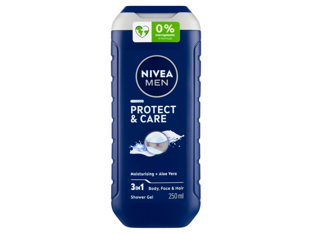 Enjoy a burst of freshness in the shower. The feeling of hydrated skin lasts even after drying. You can use the shower gel with soothing aloe vera extract on your face, body and hair. This way you don't have to switch between products and stay in the shower longer than necessary. Try gentle care for men's skin: NIVEA Men's Protect & Care Shower Gel.