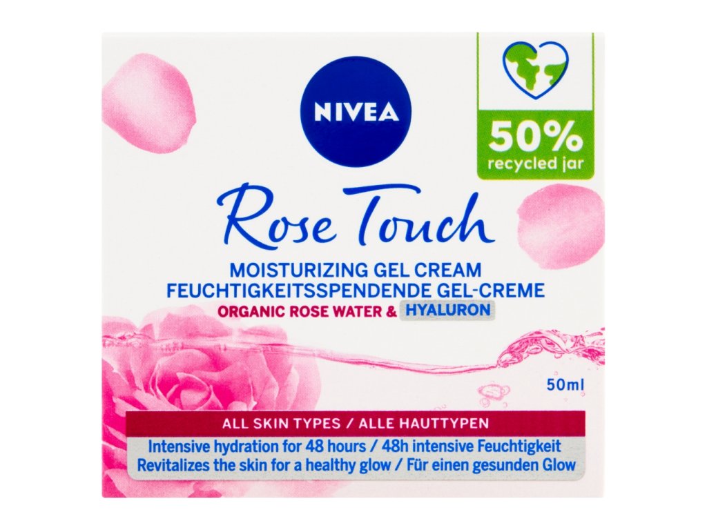 Hyaluronic acid will then smooth out fine lines and wrinkles. And don't worry, thanks to the gel-cream consistency there is no sticky feeling. That is: NIVEA Hydrating Day Gel-Cream Rose Touch .