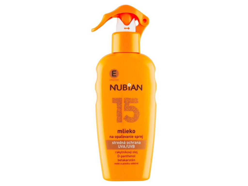 Protect your skin while sunbathing and leave it hydrated and soft with Nubian Sunscreen Lotion SPF 15 Spray .
