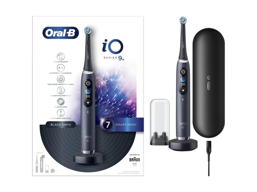 Oral-B goes even further and takes cleaning to a whole new level. We make it possible with the most thorough, gentle and quiet cleaning and a pleasing design. Meet the Oral-B iO toothbrush. Its innovative iO magnetic drive system transfers the cleaning energy of gentle micro-vibrations to the ends of the bristles, which glide from tooth to tooth, making cleaning effective and enjoyable. An advanced smart pressure sensor protects your gums and signals when you are brushing correctly. The iO system also includes an interactive OLED display that guides you in real time and allows you to adjust the toothbrush to your needs. The artificial intelligence in the Oral-B iO toothbrush recognizes 6 areas in the mouth and guides you through the Oral-B app for the most thorough cleaning. With a quick charger and premium travel case.