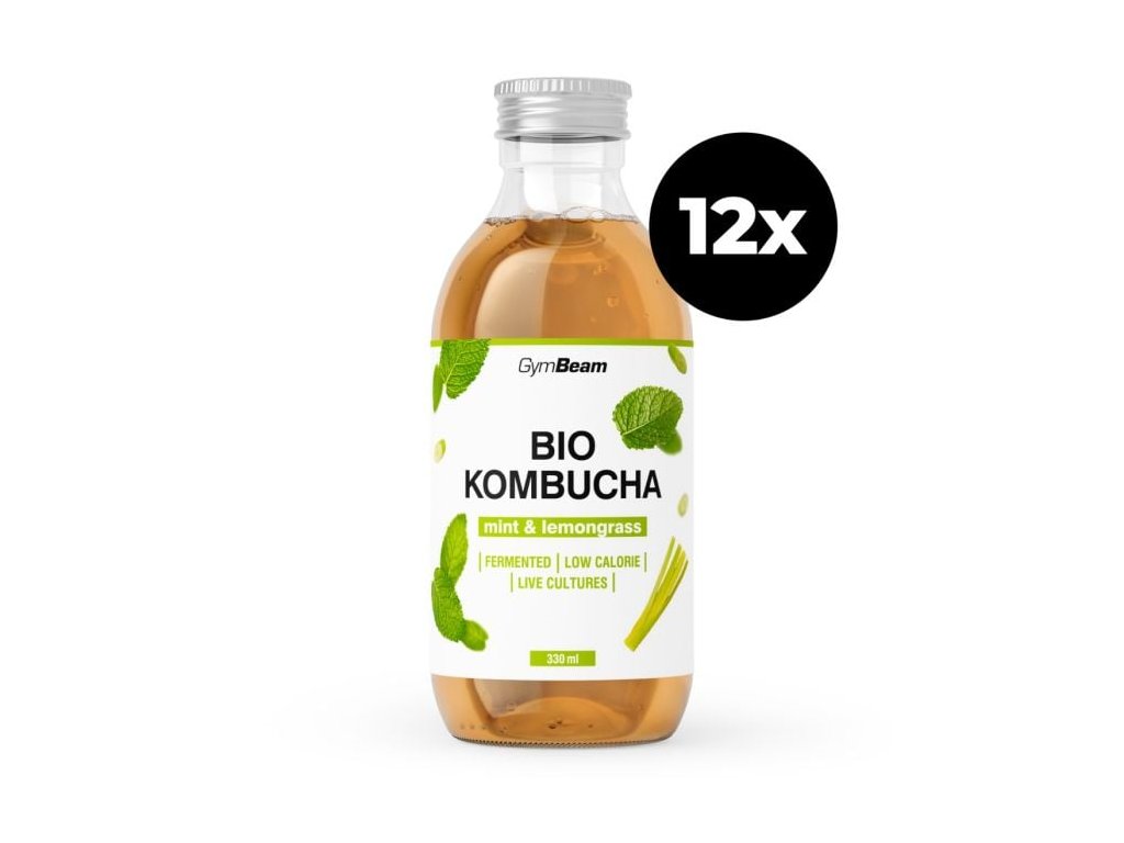 Mint & Lemongrass flavor: BIO fermented kombucha (water, BIO green tea infusion, BIO sugar, BIO kombucha culture - yeast, acetic and lactic bacteria), BIO mint and BIO lemongrass infusion [water, BIO sugar, BIO mint (0.2%), BIO lemongrass (0.05%)], carbon dioxide, lemon flavor.